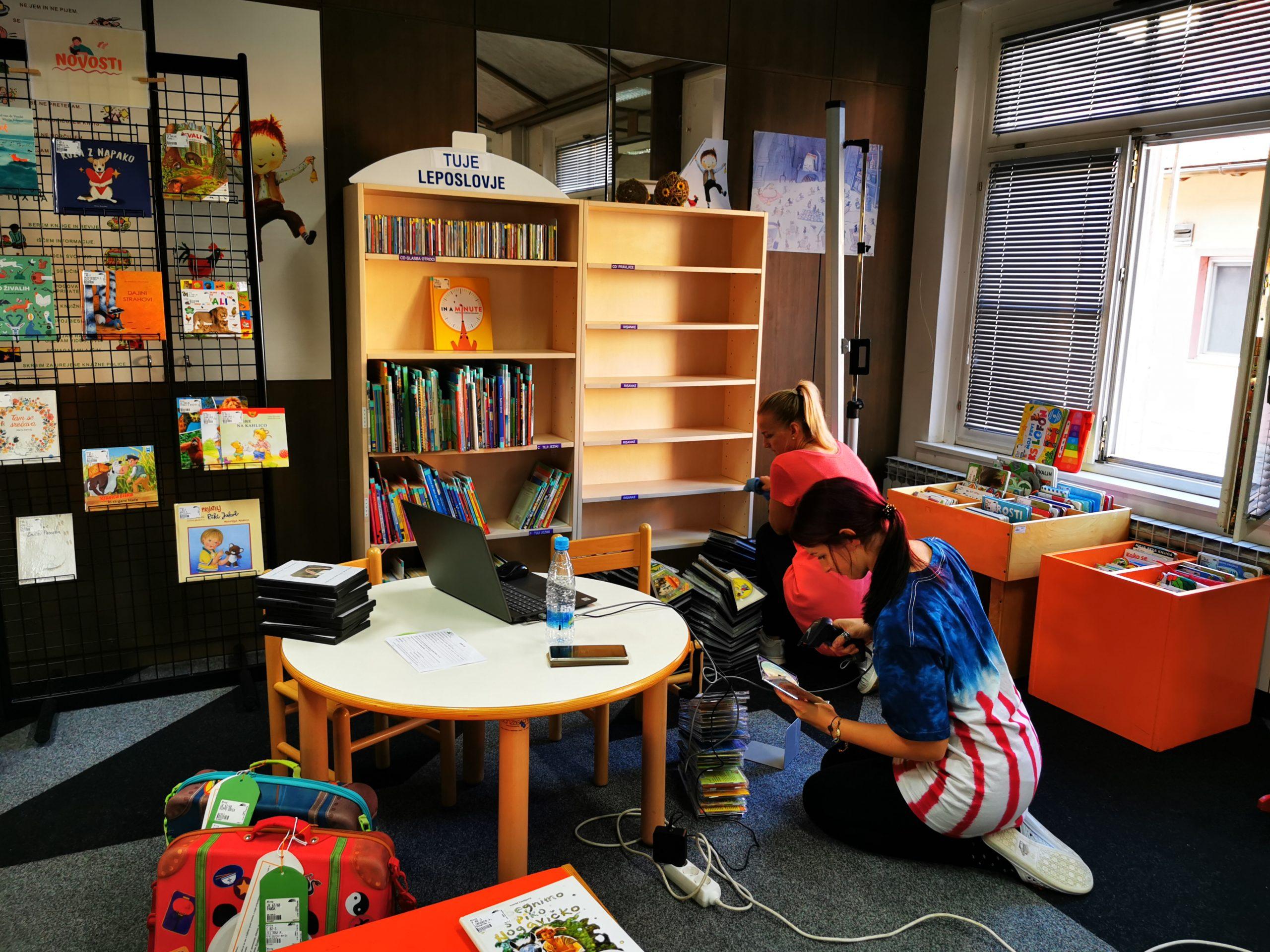 Čitalniki črtnih kod piskajo kot za stavo, saj moramo odčitati več kot 20.000 enot gradiva.